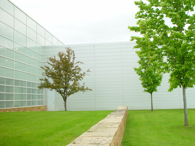 The highly custom nature of these wall panels is clearly visible. The panels have 2 horizontal reveal strips that protrude outward from the face. The reveals were attached with concealed fasteners prior to the front skin being laminated to the foam core. The vertical joint width alternates from 3/8" to 3/4". Panel skins were provided by Benchmark. The reveal strips and assembly of the panels were done by All Fab manufacturing.